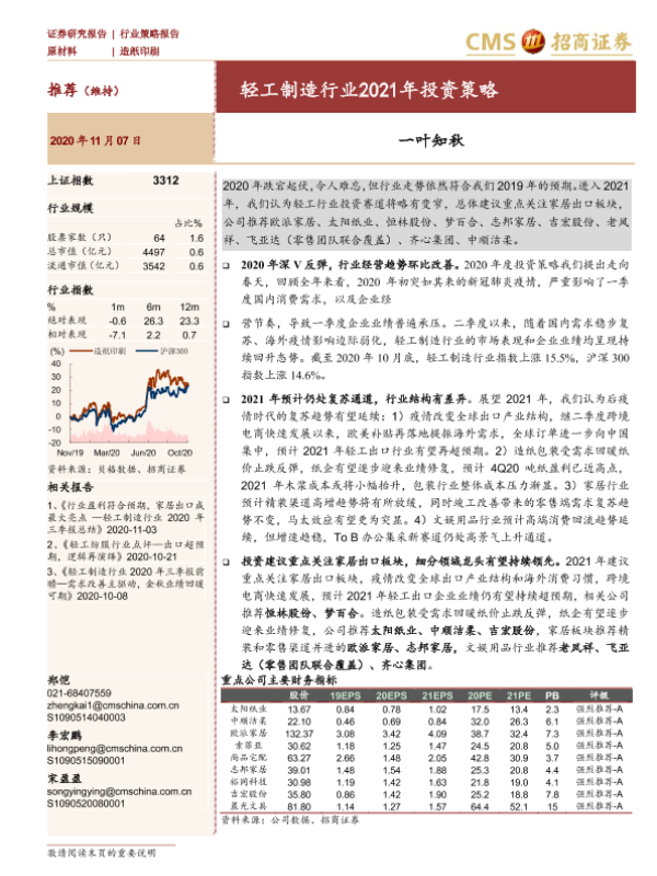 【海通证券】【20201107】轻工制造行业2021年投资策略:一叶知秋-40页