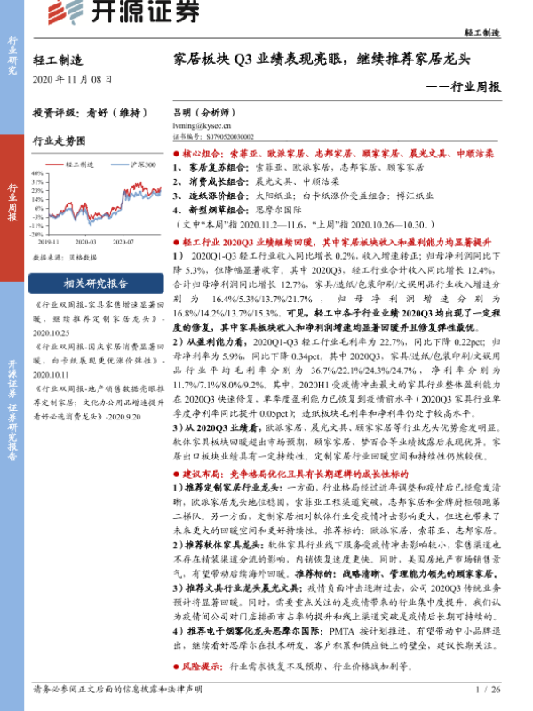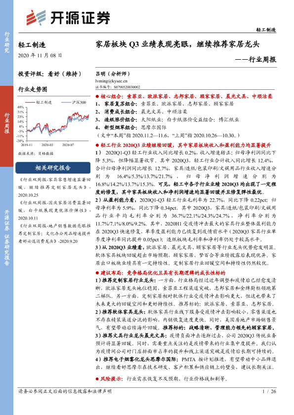 【开源证券】【20201108】轻工制造行业周报:家居板块Q3业绩表现亮眼,继续推荐家居龙头-26页