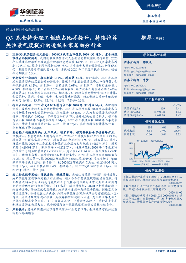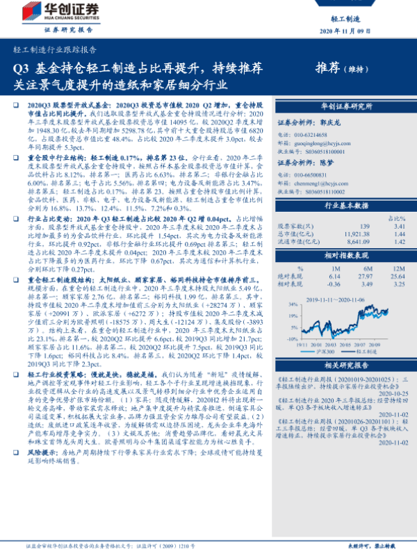 【华创证券】【20201109】20201109-华创证券-轻工制造行业跟踪报告:Q3基金持仓轻工制造占比再提升,持续推荐关注景气度提升的造纸和家居细分行业-14页