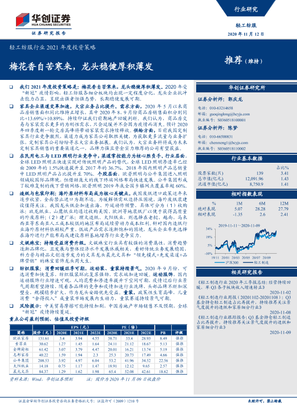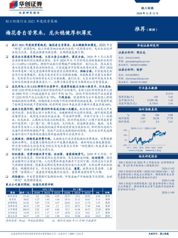 【华创证券】【20201112】轻工纺服行业2021年度投资策略:梅花香自苦寒来,龙头稳健厚积薄发-43页