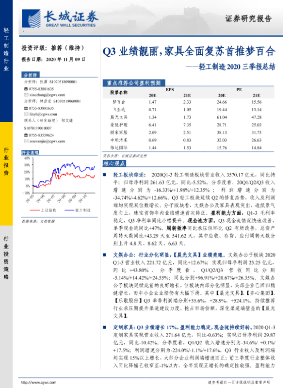 【长城证券】【20201109】轻工制造2020三季报总结:Q3业绩靓丽,家具全面复苏首推梦百合-36页