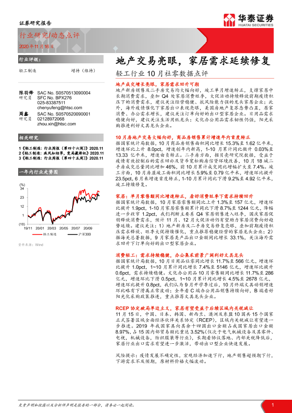 【华泰证券】【20201116】轻工行业10月社零数据点评:地产交易亮眼,家居需求延续修复-6页