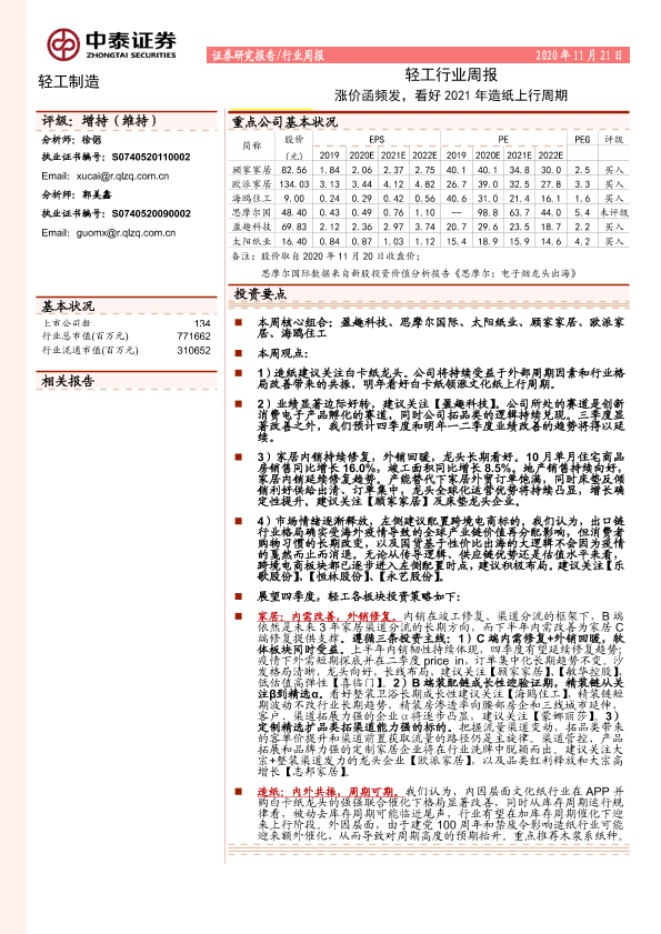【中泰证券】【20201121】20201121-中泰证券-轻工行业周报:涨价函频发,看好2021年造纸上行周期-20页