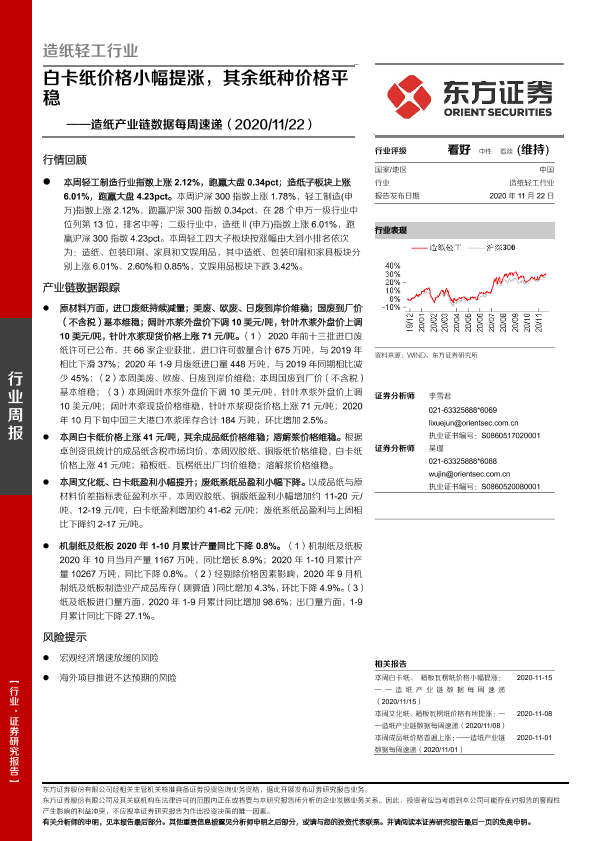 【东方证券】【20201122】20201122-东方证券-造纸产业链数据每周速递:白卡纸价格小幅提涨,其余纸种价格平稳-15页