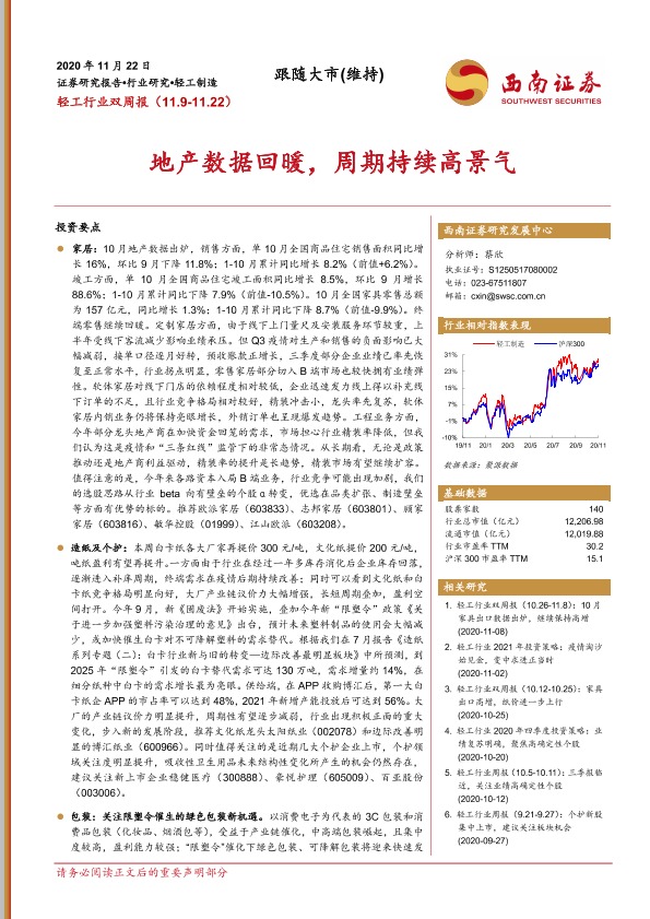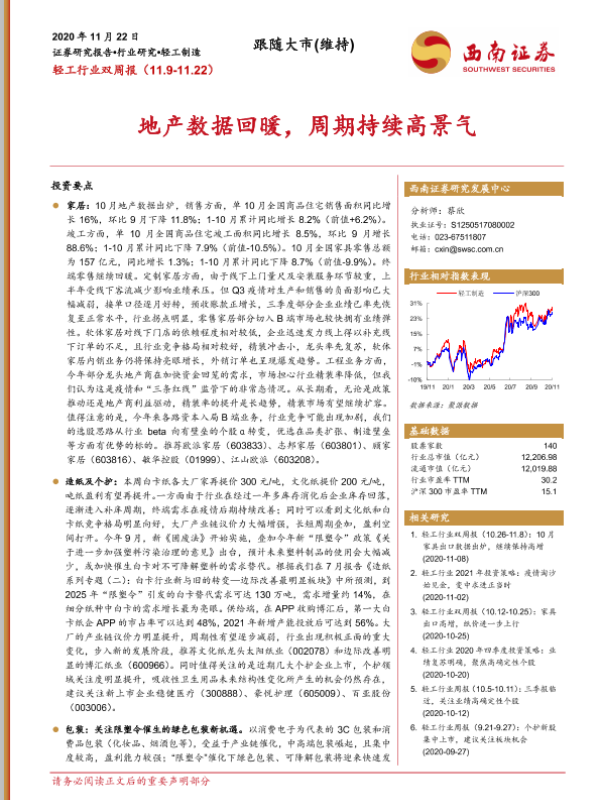 【西南证券】【20201122】20201122-西南证券-轻工行业双周报:地产数据回暖,周期持续高景气-16页