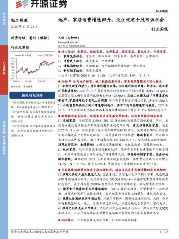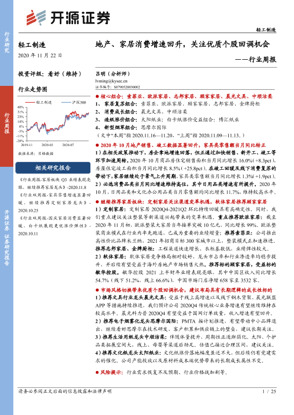 【开源证券】【20201122】20201122-开源证券-轻工制造行业周报:地产、家居消费增速回升,关注优质个股回调机会-25页