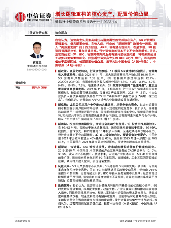 【中信证券】【20220104】通信行业运营商系列报告十一:增长逻辑重构的核心资产,配置价值凸显-36页