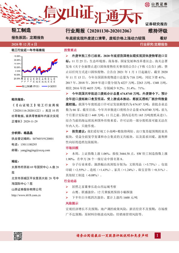 【山西证券】【20201206】20201206-山西证券-轻工制造行业周报:年底前实现外废进口清零,废纸价格上涨动力较强-13页