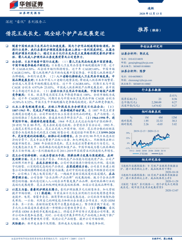 【华创证券】【20201213】20201213-华创证券-造纸行业深挖“豪悦”系列报告二:借花王成长史,观全球个护产品发展变迁-34页