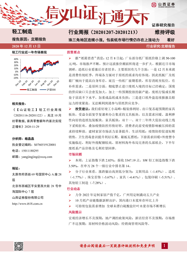 【山西证券】【20201213】轻工制造行业周报:珠三角地区连续小涨,包装纸市场行情仍存在上涨动力-13页