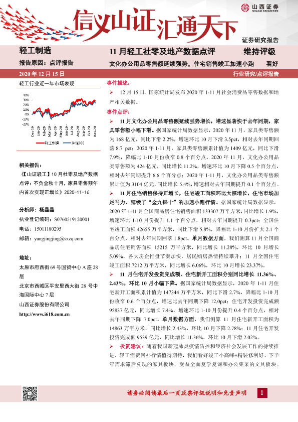 【山西证券】【20201215】20201215-山西证券-11月轻工社零及地产数据点评:文化办公用品零售额延续强势,住宅销售竣工加速小跑-6页