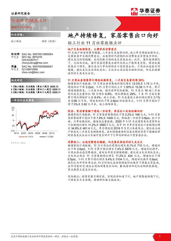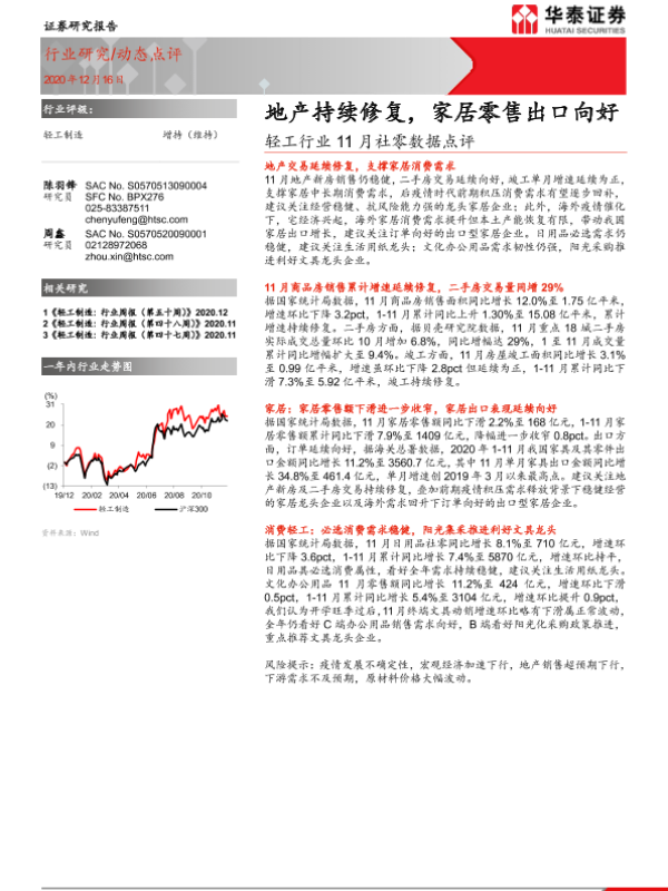 【华泰证券】【20201216】轻工行业11月社零数据点评:地产持续修复,家居零售出口向好-6页