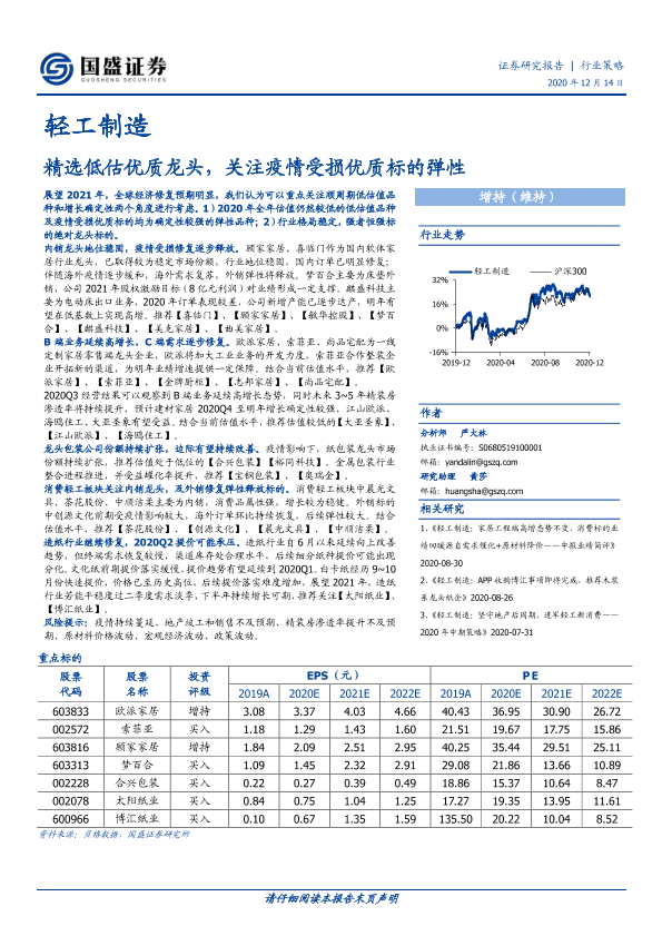 【国盛证券】【20201214】20201214-国盛证券-轻工制造行业策略:精选低估优质龙头,关注疫情受损优质标的弹性-60页