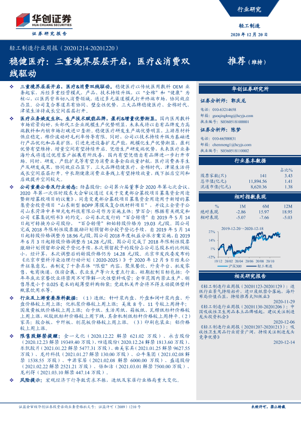 【华创证券】【20201220】轻工制造行业周报:稳健医疗:三重境界层层开启,医疗&消费双线驱动-14页