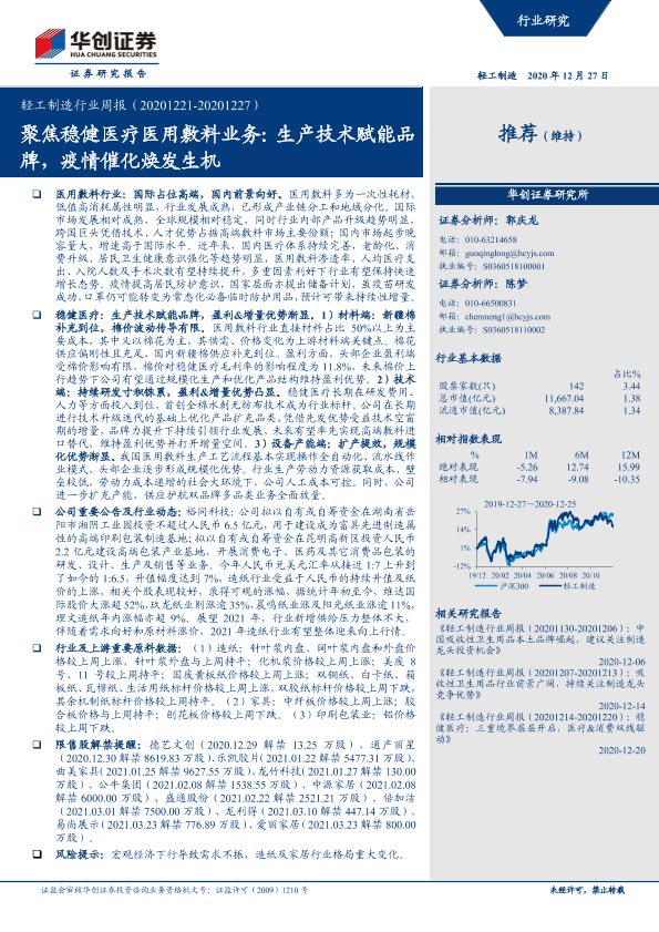 【华创证券】【20201227】轻工制造行业周报:聚焦稳健医疗医用敷料业务:生产技术赋能品牌,疫情催化焕发生机-14页