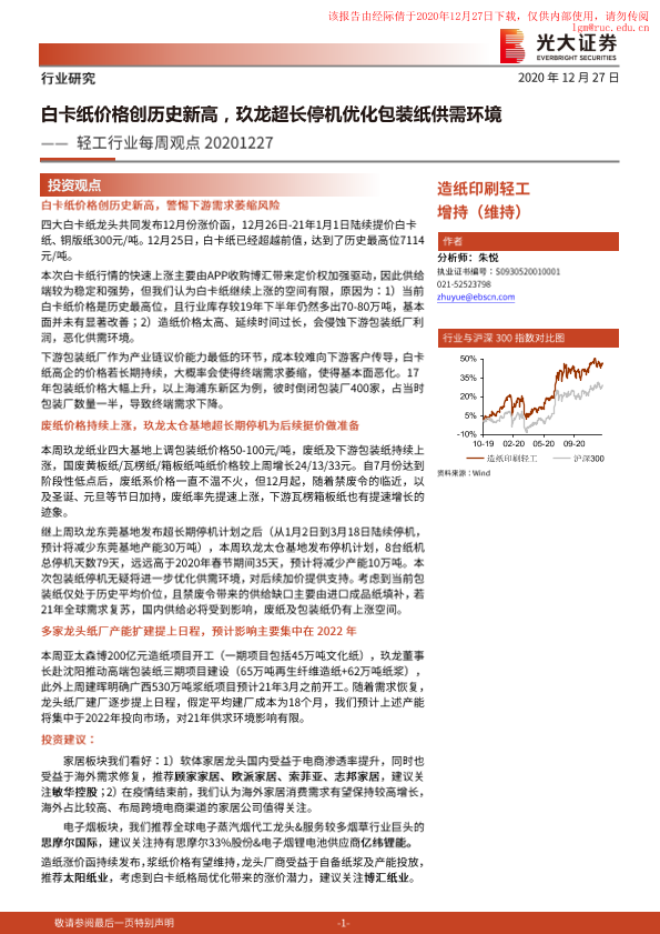 【光大证券】【20201227】轻工行业每周观点:白卡纸价格创历史新高,玖龙超长停机优化包装纸供需环境-7页