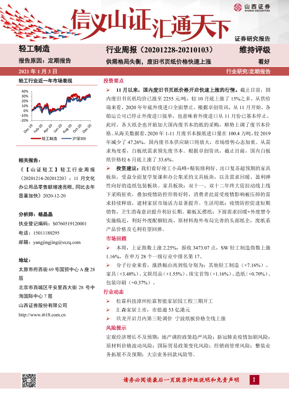 【山西证券】【20210103】20210103-山西证券-轻工制造行业周报:供需格局失衡,废旧书页纸价格快速上涨-13页