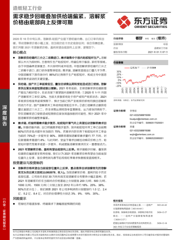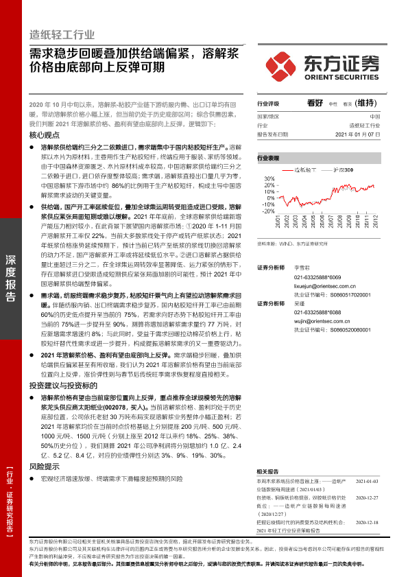 【东方证券】【20210107】需求稳步回暖叠加供给端偏紧,溶解浆价格由底部向上反弹可期-18页