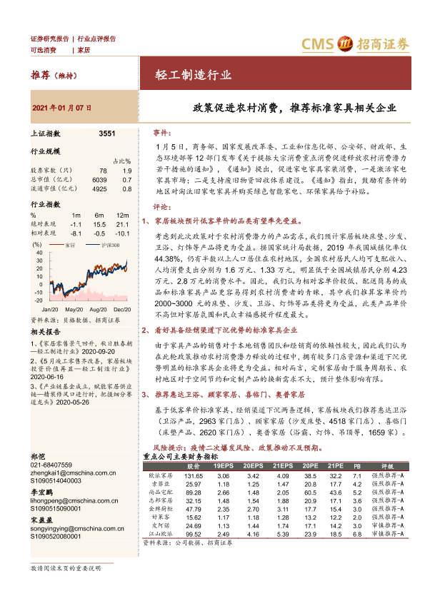 【海通证券】【20210107】轻工制造行业:政策促进农村消费,推荐标准家具相关企业-3页
