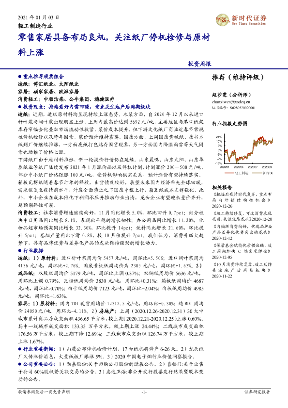 【新时代证券】【20210103】20210103-新时代证券-轻工制造行业投资周报:零售家居具备布局良机,关注纸厂停机检修与原材料上涨-21页