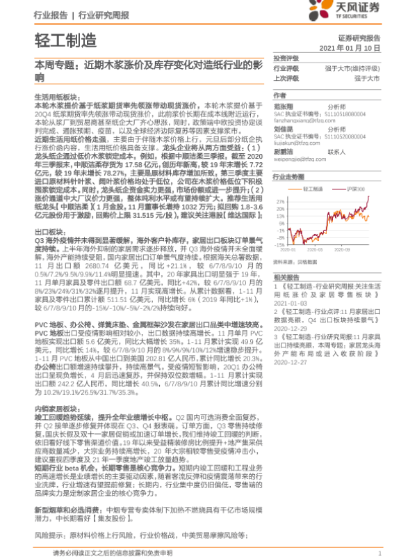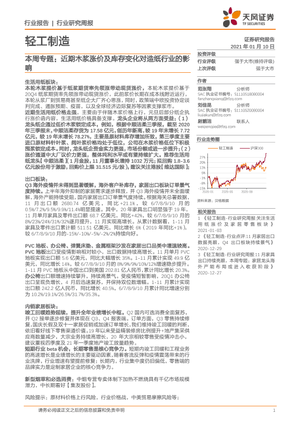 【天风证券】【20210110】轻工制造本周专题:近期木浆涨价及库存变化对造纸行业的影响-18页