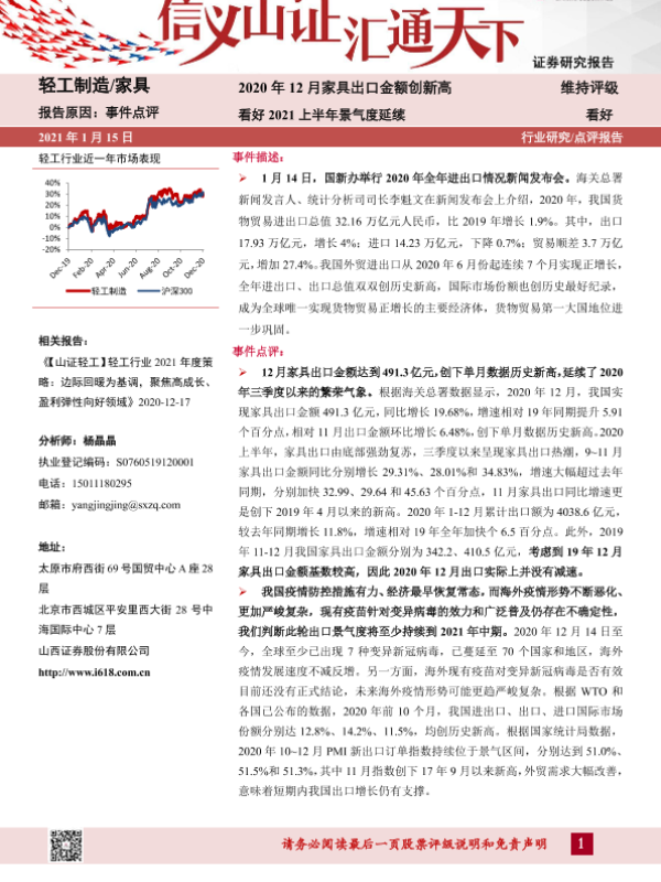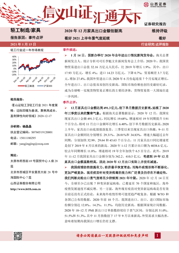 【山西证券】【20210115】轻工制造 家具:2020年12月家具出口金额创新高:看好2021上半年景气度延续-6页