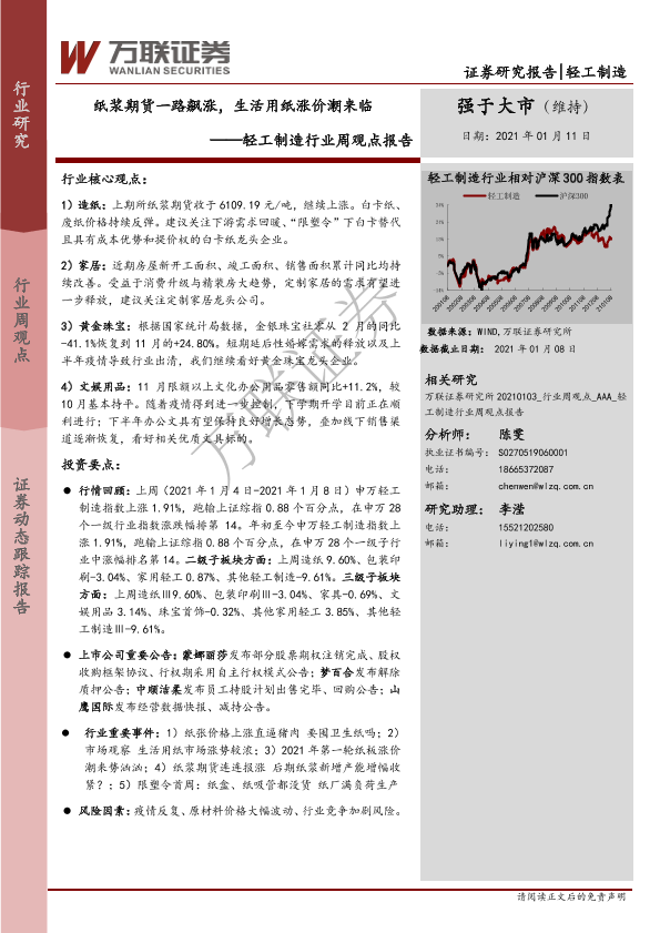 【万联证券】【20210111】20210111-万联证券-轻工制造行业周观点报告:纸浆期货一路飙涨,生活用纸涨价潮来临-13页