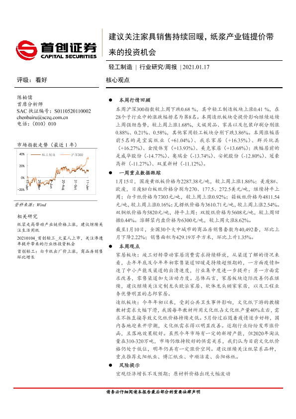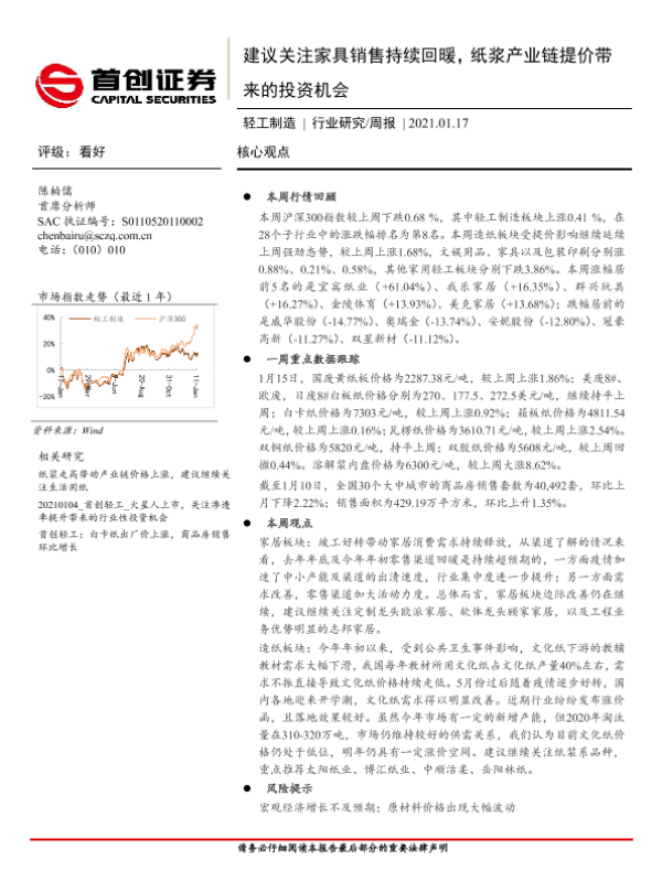 【首创证券】【20210117】20210117-首创证券-轻工制造行业研究周报:建议关注家具销售持续回暖,纸浆产业链提价带来的投资机会-13页