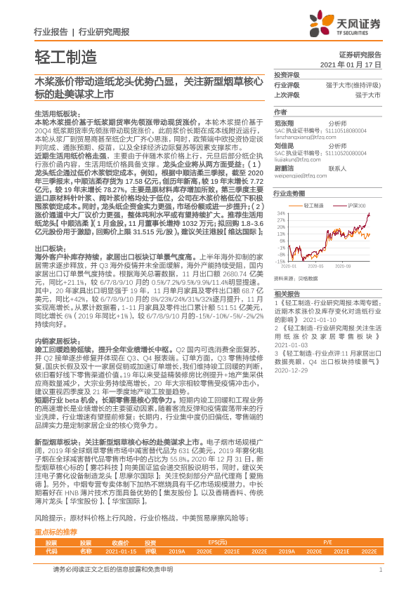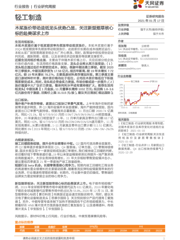 【天风证券】【20210117】20210117-天风证券-轻工制造行业研究周报:木桨涨价带动造纸龙头优势凸显,关注新型烟草核心标的赴美谋求上市-19页