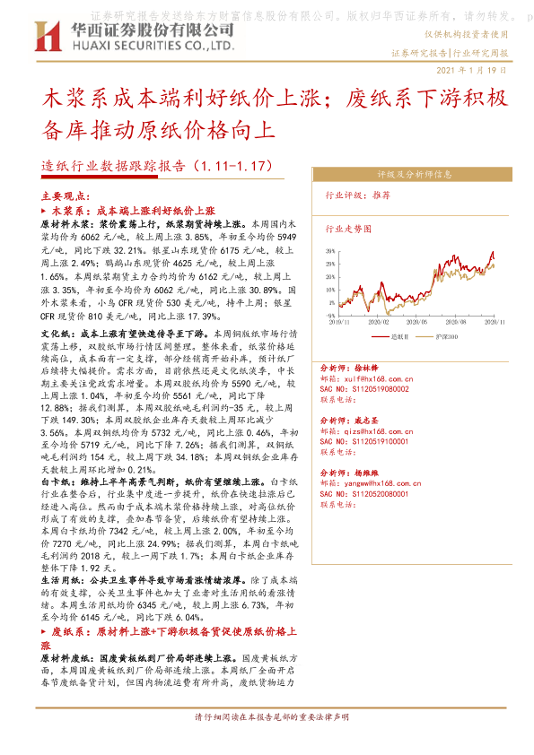 【华西证券】【20210119】造纸行业数据跟踪报告:木浆系成本端利好纸价上涨;废纸系下游积极备库推动原纸价格向上-10页