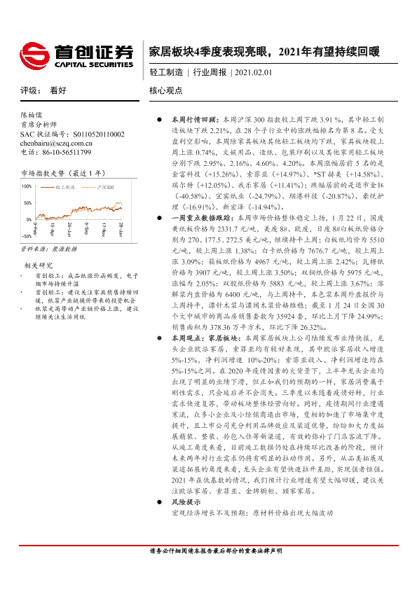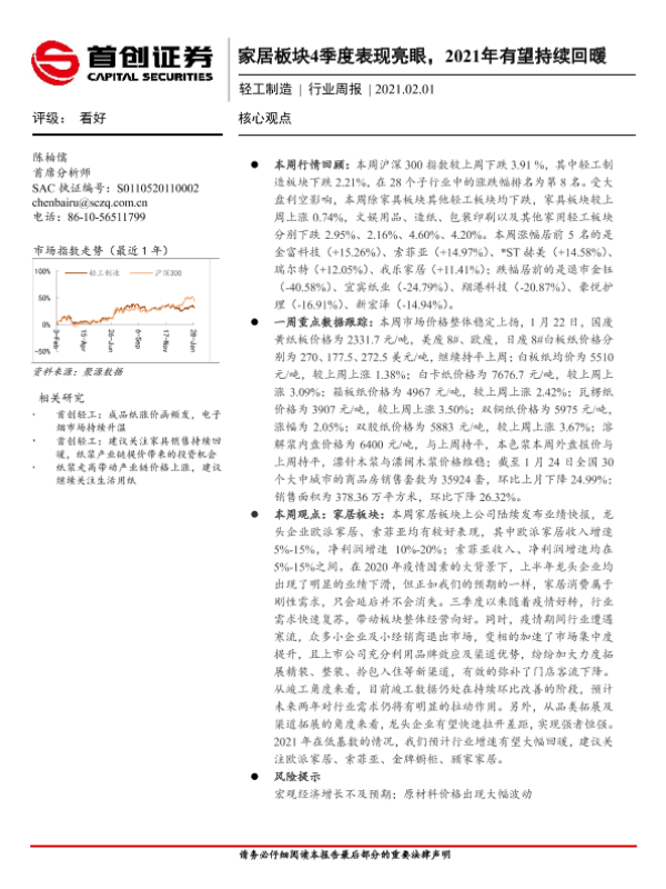 【首创证券】【20210201】20210201-首创证券-轻工制造行业周报:家居板块4季度表现亮眼,2021年有望持续回暖-12页