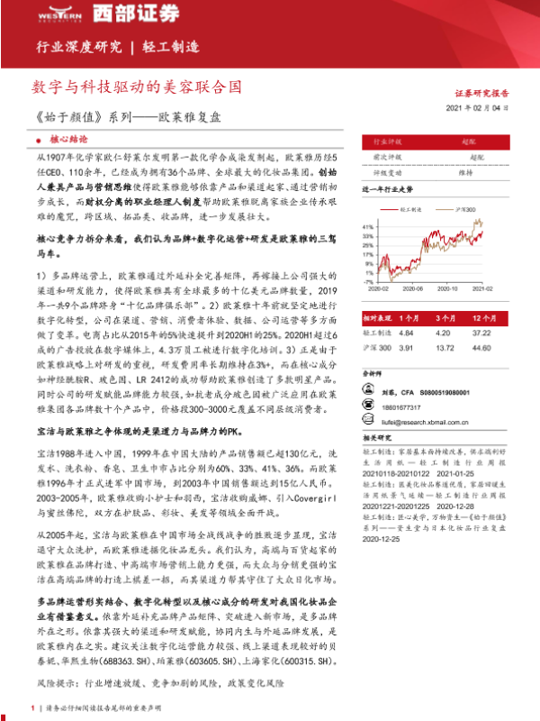 【西部证券】【20210204】轻工制造《始于颜值》系列:欧莱雅复盘-数字与科技驱动的美容联合国-32页