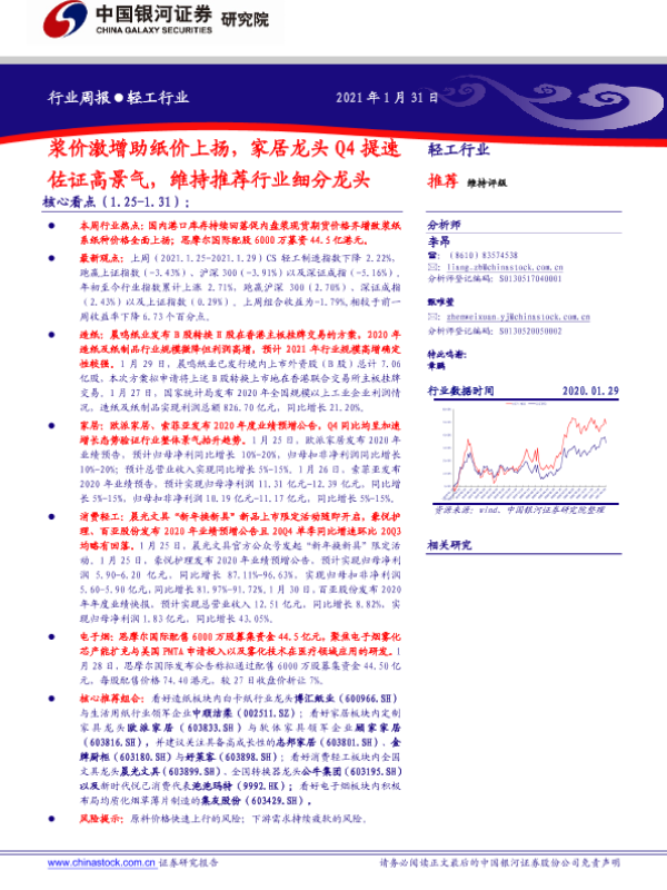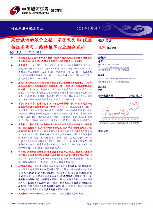 【银河证券】【20210131】20210131-中国银河-轻工行业:浆价激增助纸价上扬,家居龙头Q4提速佐证高景气,维持推荐行业细分龙头-38页