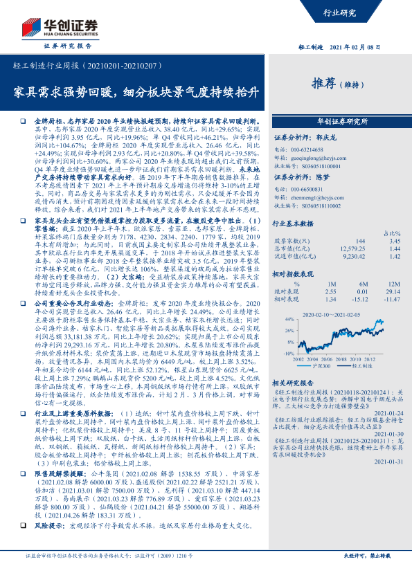 【华创证券】【20210208】20210208-华创证券-轻工制造行业周报:家具需求强势回暖,细分板块景气度持续抬升-15页