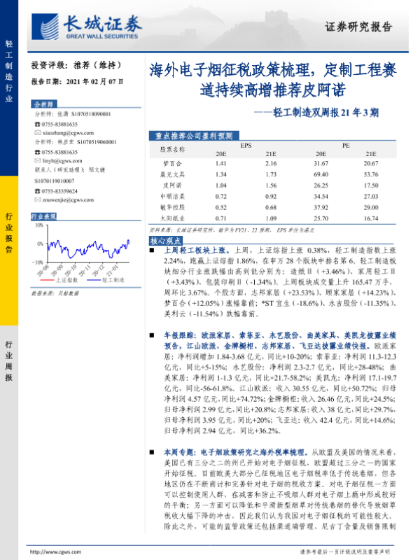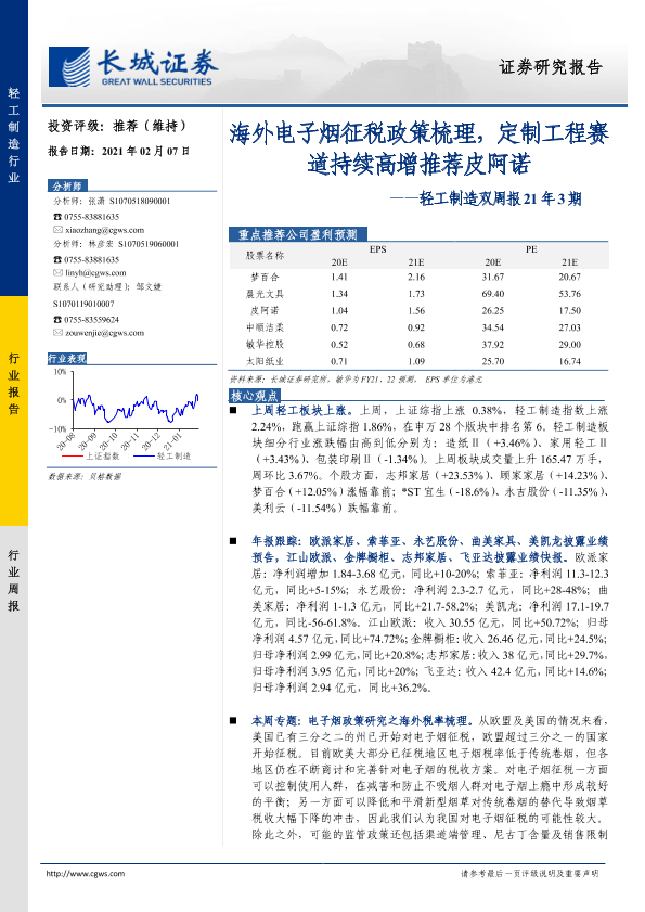 【长城证券】【20210207】20210207-长城证券-轻工制造双周报21年3期:海外电子烟征税政策梳理,定制工程赛道持续高增推荐皮阿诺-26页