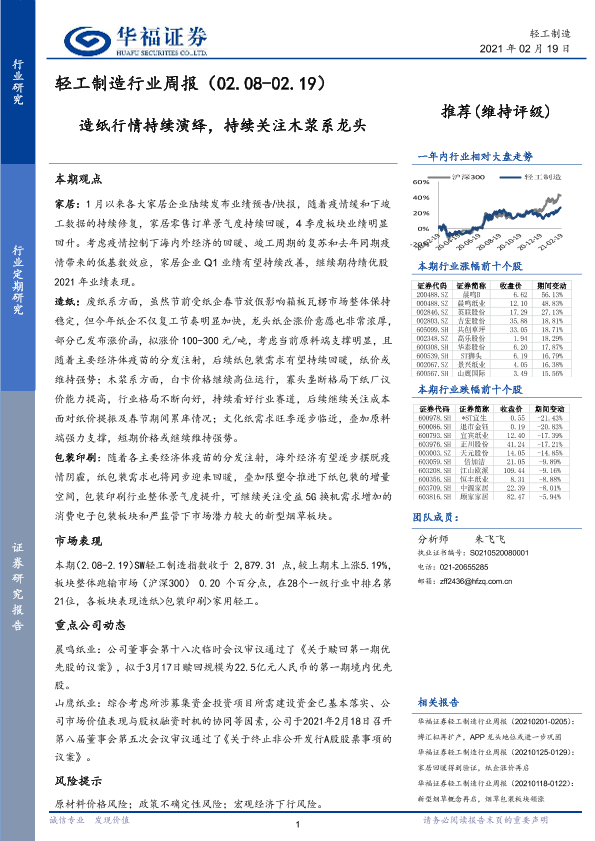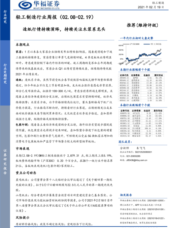 【华福证券】【20210219】轻工制造行业周报:造纸行情持续演绎,持续关注木浆系龙头-12页