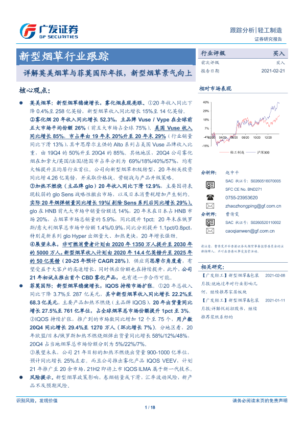 【广发证券】【20210221】20210221-广发证券-新型烟草行业跟踪:详解英美烟草与菲莫国际年报,新型烟草景气向上-18页
