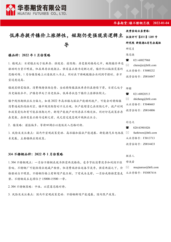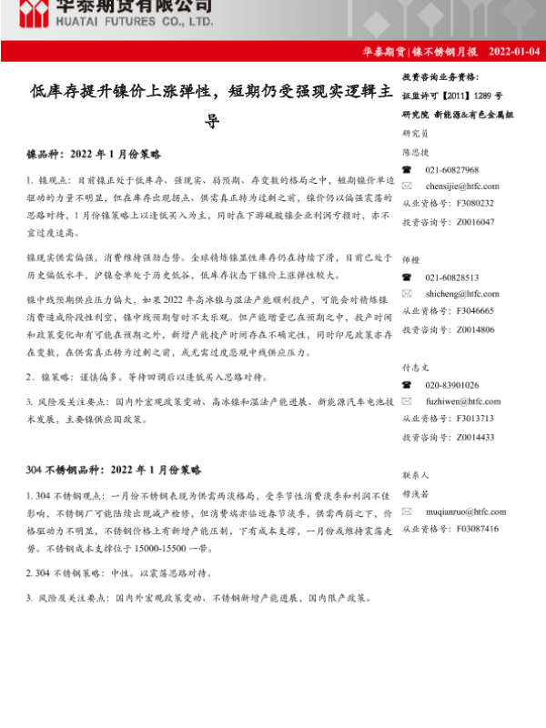 【华泰期货】【20220104】镍不锈钢月报:低库存提升镍价上涨弹性,短期仍受强现实逻辑主导-21页