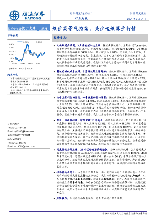 【海通证券】【20210301】20210301-海通证券-造纸轻工行业周报:纸价高景气持续,关注造纸涨价行情-5页