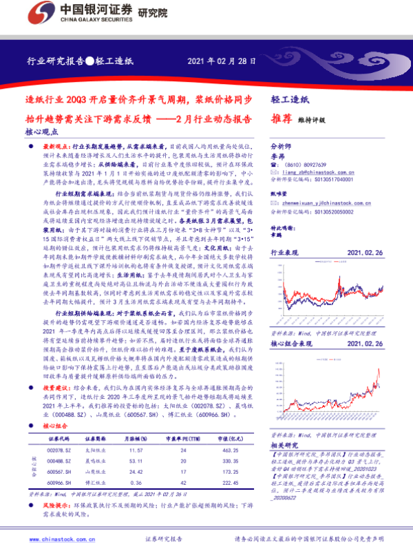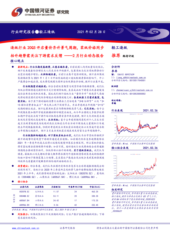 【银河证券】【20210228】20210228-中国银河-轻工造纸2月行业动态报告:造纸行业20Q3开启量价齐升景气周期,浆纸价格同步抬升趋势需关注下游需求反馈-24页