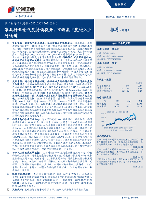 【华创证券】【20210314】轻工制造行业周报:家具行业景气度持续提升,市场集中度进入上行通道-15页