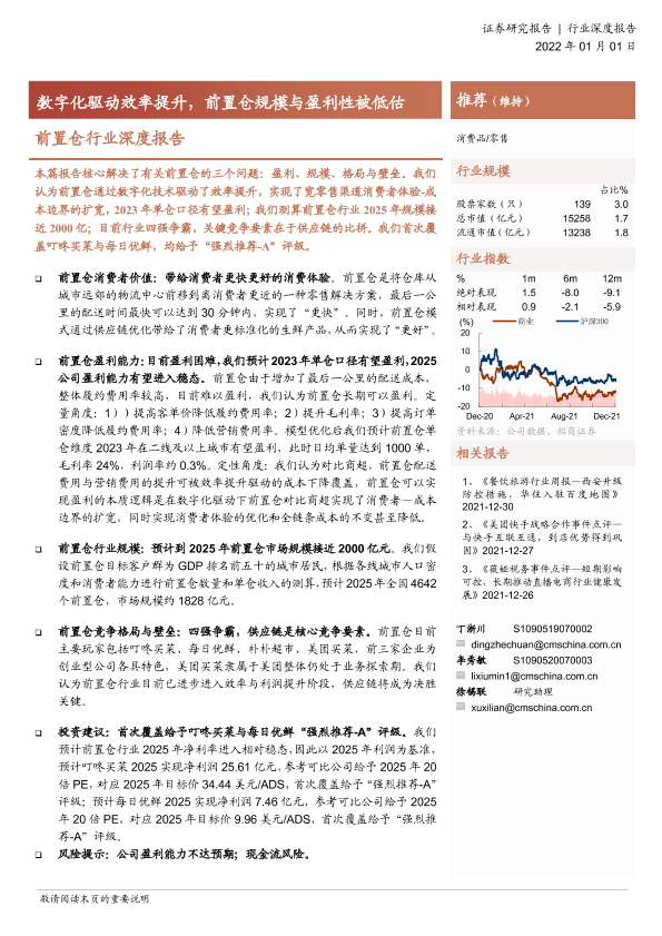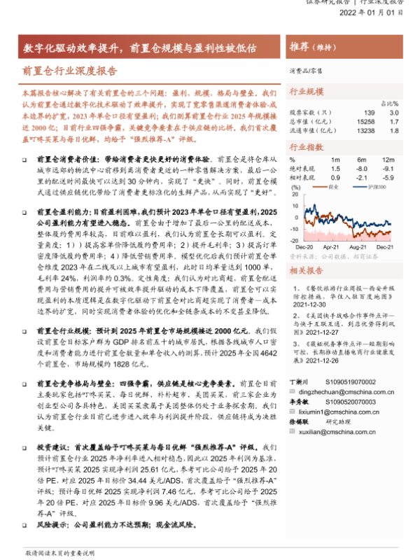 【海通证券】【20220101】零售行业前置仓行业深度报告:数字化驱动效率提升,前置仓规模与盈利性被低估-29页