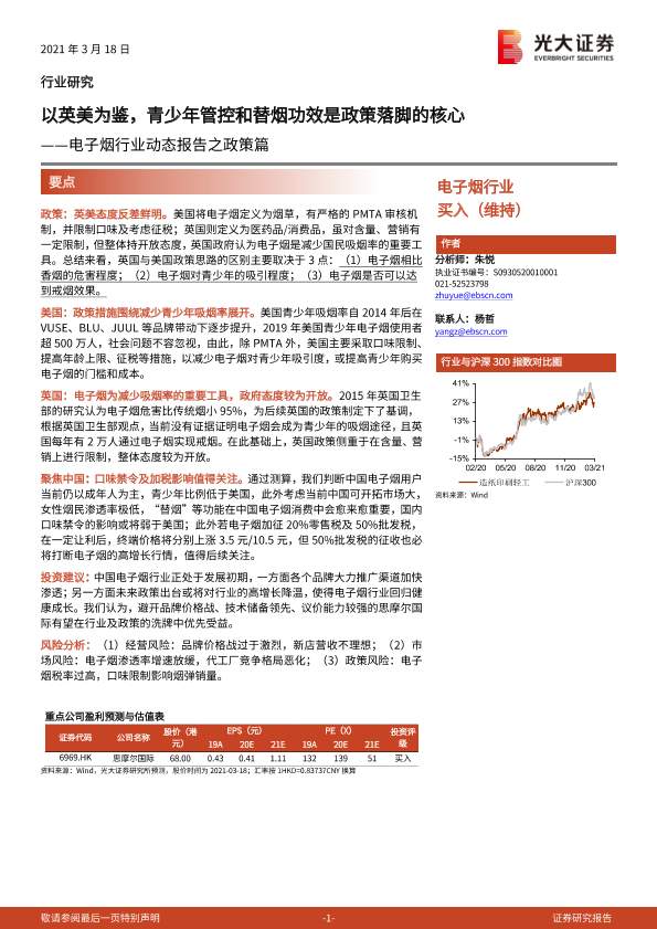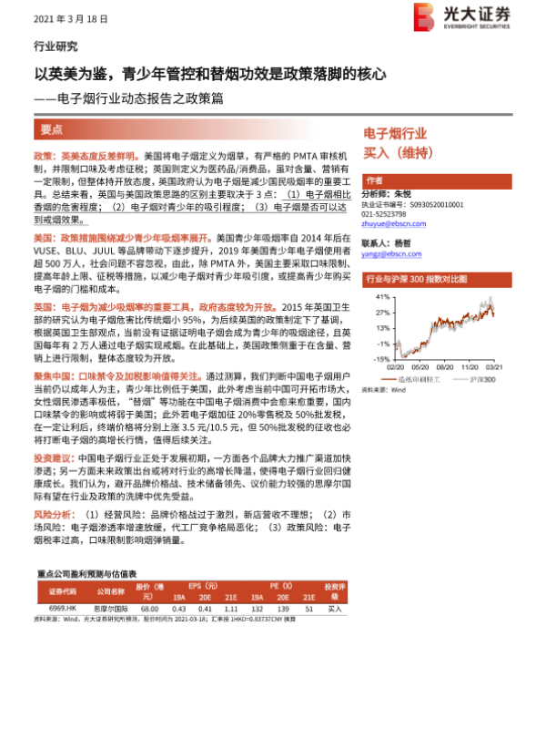 【光大证券】【20210318】电子烟行业动态报告之政策篇:以英美为鉴,青少年管控和替烟功效是政策落脚的核心-11页