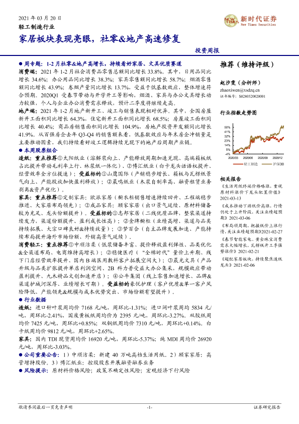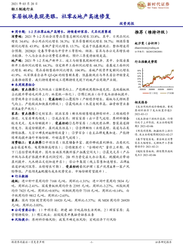 【新时代证券】【20210320】20210320-新时代证券-轻工制造行业投资周报:家居板块表现亮眼,社零&地产高速修复-15页