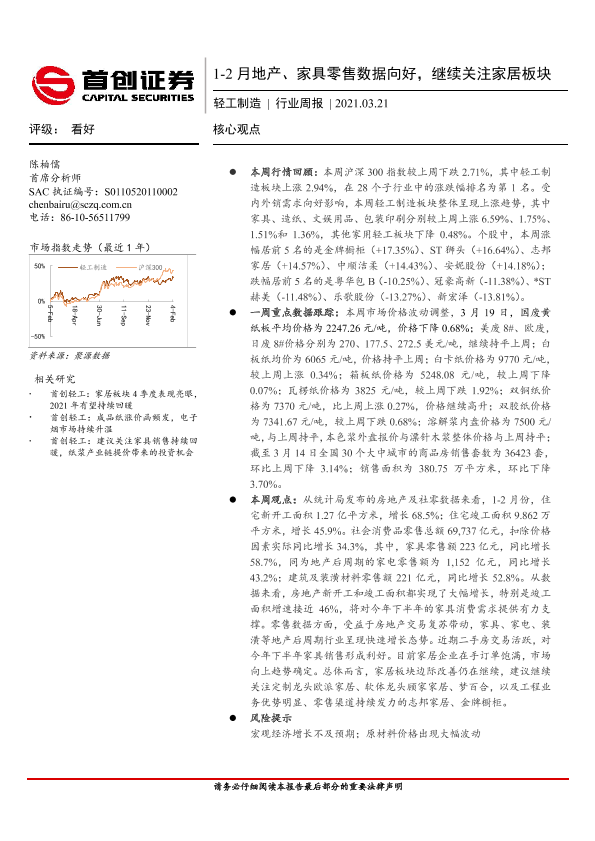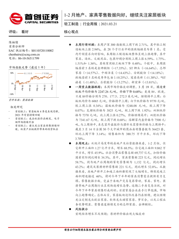 【首创证券】【20210321】20210321-首创证券-轻工制造行业周报:1-2月地产、家具零售数据向好,继续关注家居板块-12页