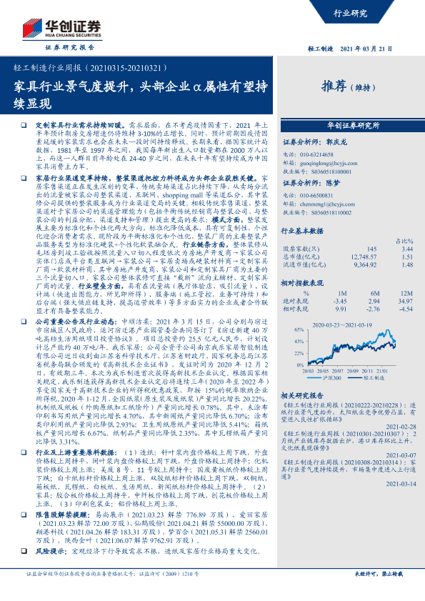 【华创证券】【20210321】20210321-华创证券-轻工制造行业周报:家具行业景气度提升,头部企业α属性有望持续显现-14页