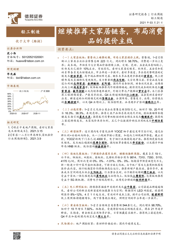 【德邦证券】【20210321】轻工制造行业周报:继续推荐大家居链条,布局消费品的提价主线-16页