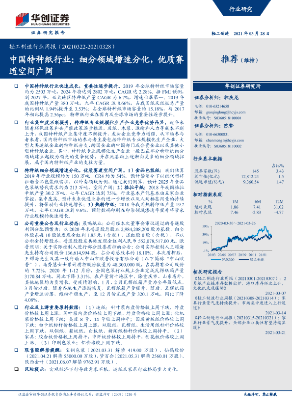 【华创证券】【20210328】20210328-华创证券-轻工制造行业周报:中国特种纸行业:细分领域增速分化,优质赛道空间广阔-14页