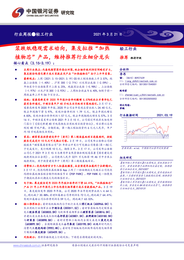 【银河证券】【20210321】20210321-中国银河-轻工行业周报:浆跌纸稳观需求动向,集友拟推“加热植物芯” 产品,维持推荐行业细分龙头-37页