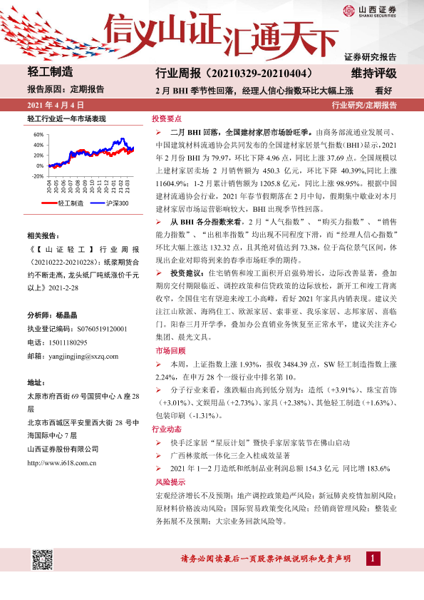 【山西证券】【20210404】20210404-山西证券-轻工制造行业周报:2月BHI季节性回落,经理人信心指数环比大幅上涨-13页